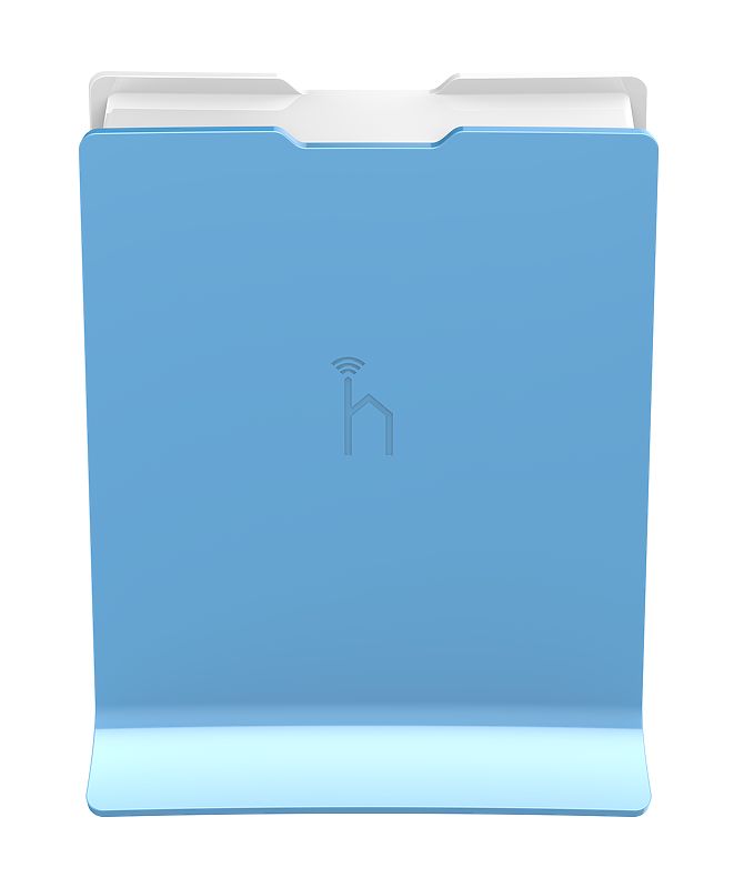 Pequeño AP doméstico con cuatro puertos ethernet y una carcasa colorida.