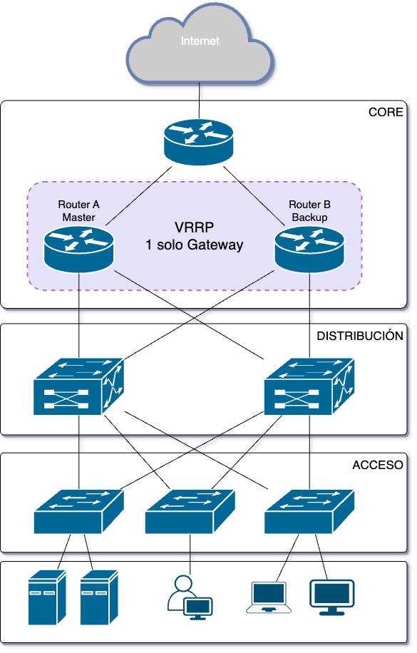 - VRRP + Internet (router): Requerimiento de 2 Gateways en LAN