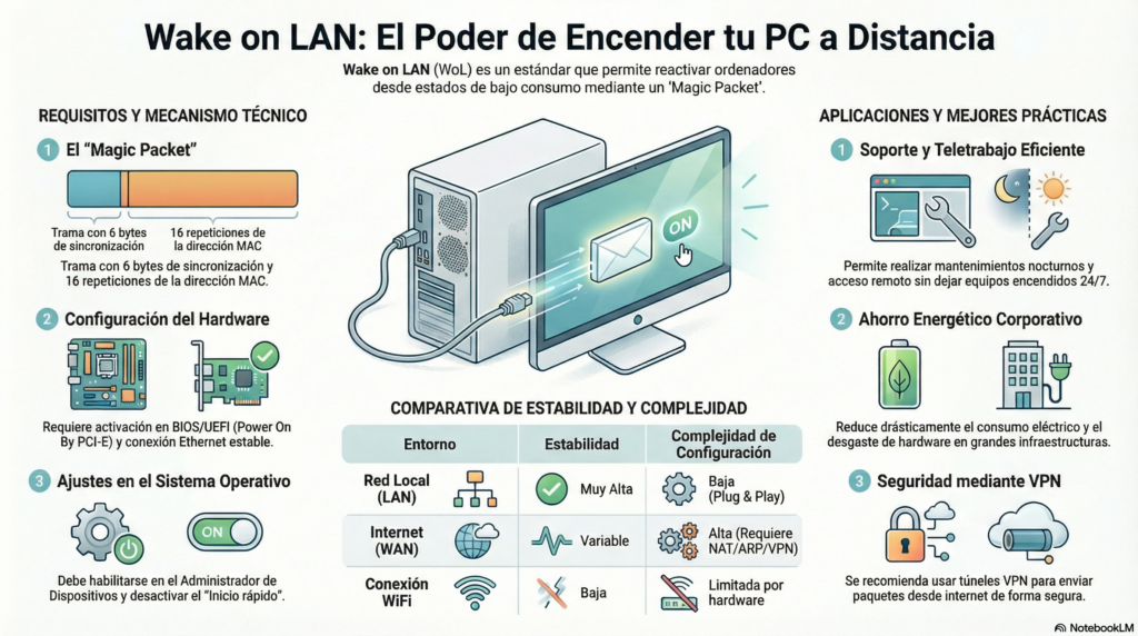 Wake on LAN: funcionamiento y situaciones prácticas (guía completa y profesional)